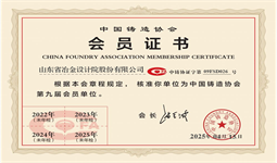 經過前期準備工作及入會申請,4月15日中國鑄造協會核準山冶設計成為協會會員單位(會員編號09FSD026)。